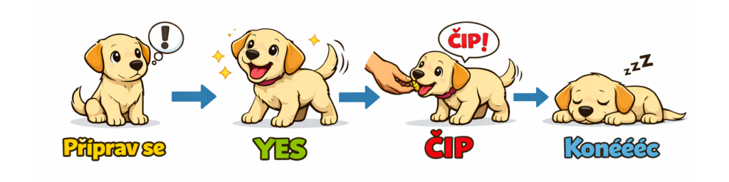 👉 Tento systém je základem pro další trénink i běžný život se psem.